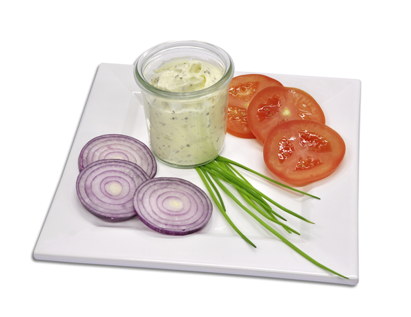 Salatmayonnaise mit gehackten Gurken, Eiern, Zwiebeln und feinen Kräutern. Auslaufsicher versiegelt.