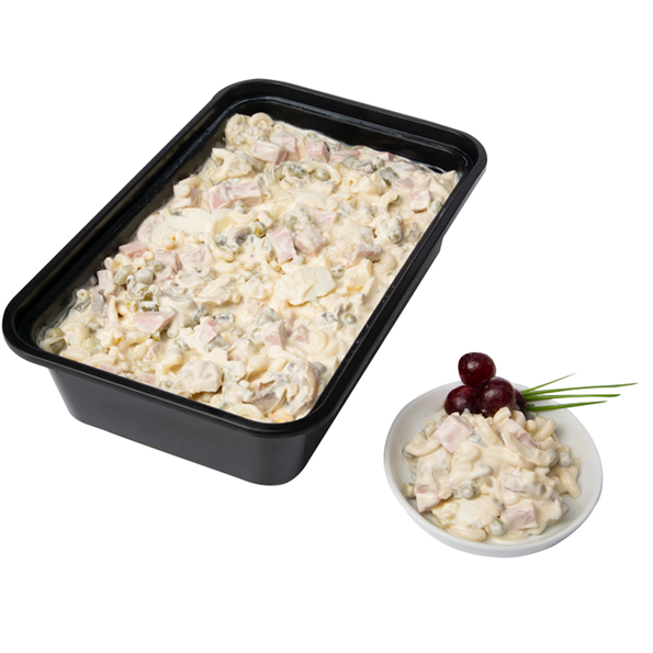 Schmeckt wie hausgemacht. Gabelspaghetti, Erbsen, Schinkenwurst, Eier, Champignons, Gurken in Sahne-Joghurtcreme. Auslaufsicher versiegelt.