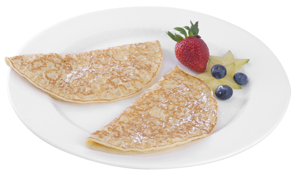 Eierpfannkuchen natur, 1 x gefaltet. Schmecken hervorragend mit Apfelmus und Zucker oder mit kalten oder heißen Früchten.