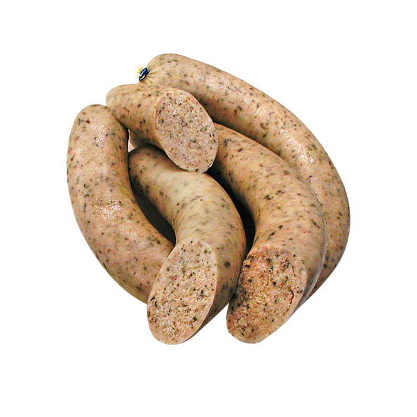 Geräucherte Knackwurst mit feinen Kräutern im Naturdarm.