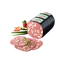 Eine gegarte, schnittfeste Mettwurstspezialität. Frisch-saftig im Biss, herzhaft - würzig im Geschmack.