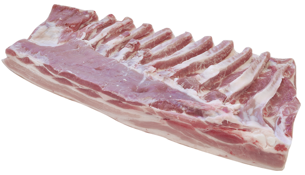 Zarter, saftig durchwachsener Schweinebauch ohne Knochen.